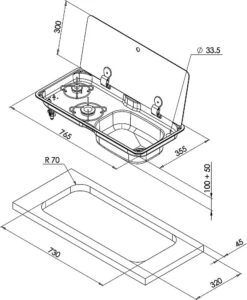 Can FL1400 Kocher-Spülen Kombination, 2-flammig, Spüle Rechts