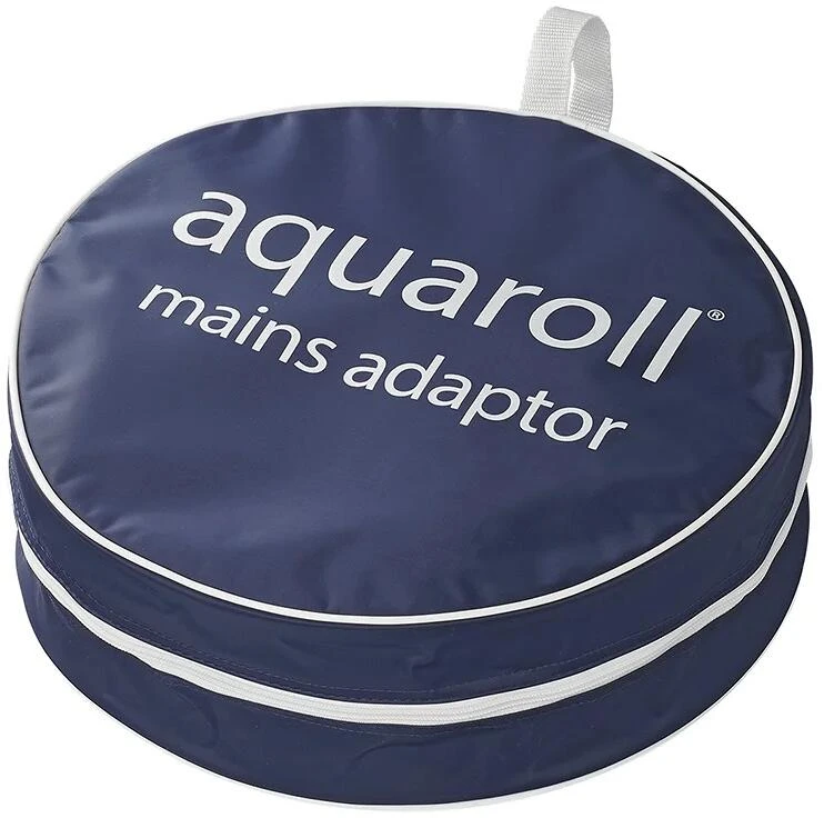 Die offizielle Aufbewahrungstasche für den Aquaroll-Netzadapter ist so konzipiert, dass der Netzadapter und der Schlauch ordentlich aufgerollt bleiben, um einen einfachen Transport zwischen voll ausgestatteten Wohnwagenstellplätzen zu ermöglichen. Jede Tasche wird in England aus marineblauem, wasserabweisendem PVC mit strapazierfähigen Nylon-Tragegriffen und einem Reißverschluss hergestellt, um sicherzustellen, dass Ihr Aquaroll-Netzadapter sicher verpackt ist. Das Netzteil ist nicht im Lieferumfang enthalten, es wird nur zu Fotozwecken gezeigt.