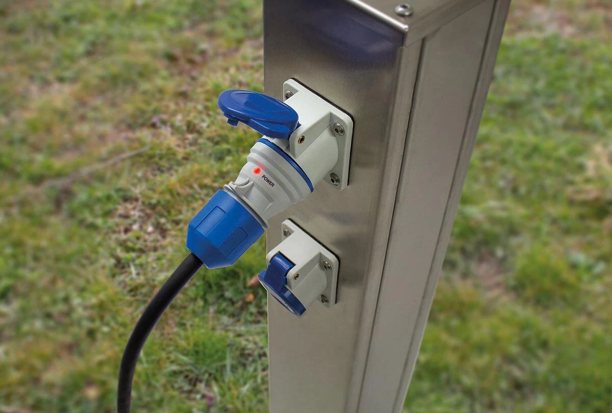 - 1x CEE Kupplung mit Klappdeckel 230 V, 16 A, 3-polig mit powerlight Spannungsanzeige