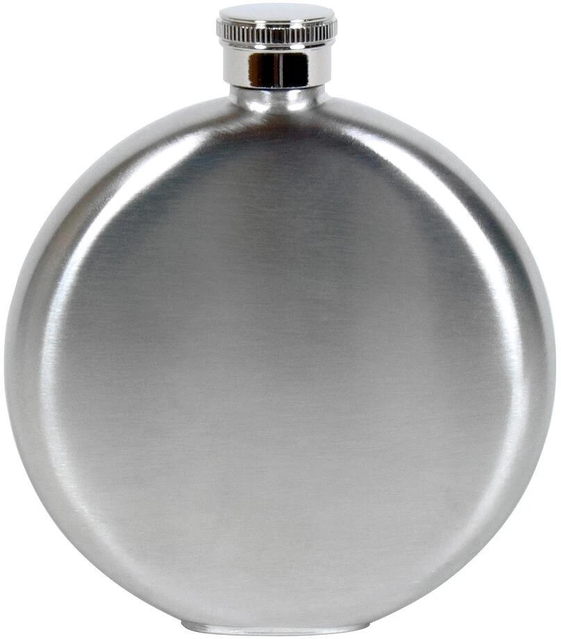 Eine runde Edelstahlflasche mit edlem Design. Glatt und rund, ein echter Handschmeichler.