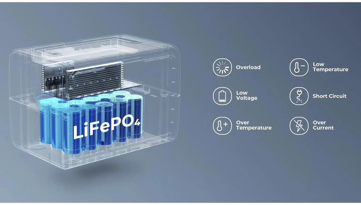 Erleben Sie höchste Sicherheit durch LiFePO4-Akku und BMS (Battery Management System).Im Vergleich zu herkömmlichen Lithium-Ionen-Zellen besitzt die LiFePO4-Batterie der EB3A aufgrund ihrer bemerkenswerten thermischen und chemischen Stabilität einen natürlichen Vorteil, der Ihnen eine bessere Leistung und eine längere Lebensdauer (2.500 Zyklen bis 80 %) bietet. Während BMS Ihr Gerät jederzeit überwacht und vor jedem potenziellen Risiko schützt.
