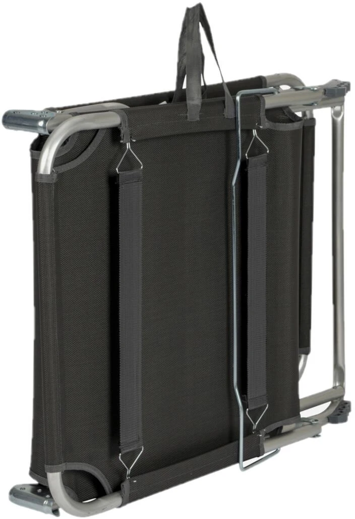 Die Bo-Camp Dreibeinliege ist ein extra breites Modell mit einem komfortablen Textilene-Gewebe und leichtem Aluminiumrahmen. Die RĂĽckenlehne ist in drei Positionen verstellbar.