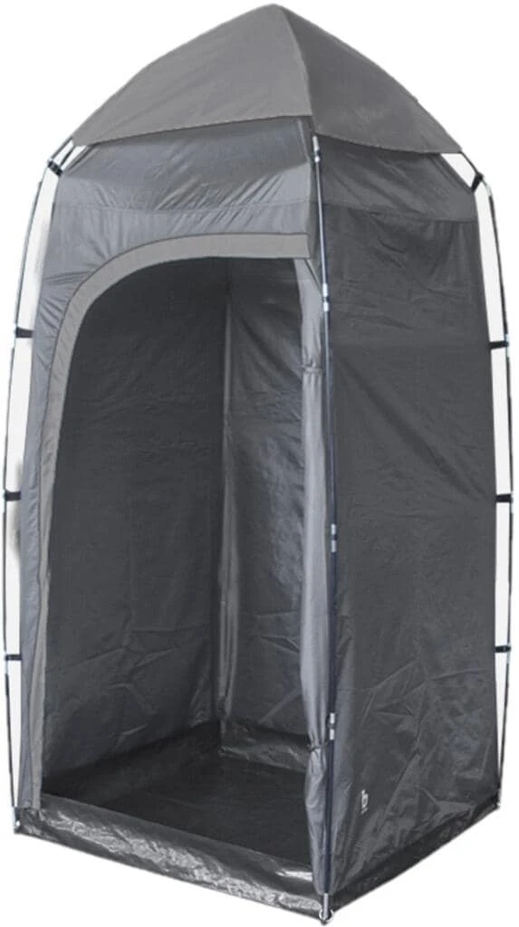 Bo-Camp Dusch- & Toilettenzelt aus 190T Polyester. Das Zelt hat ein Doppeldach zur Belüftung. Der Boden ist abnehmbar, praktisch zum Duschen. Inklusive Aufhängepunkt für zum Beispiel eine Dusche. Inklusive Zeltleinen, Pflöcke und Tragetasche.