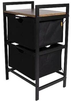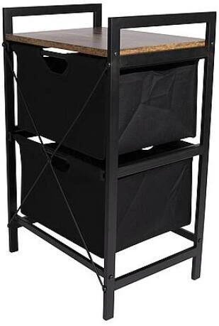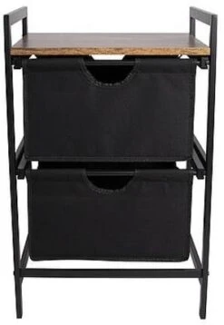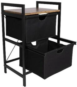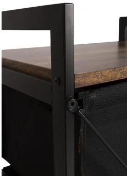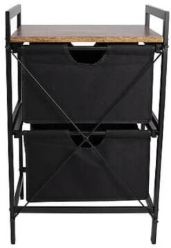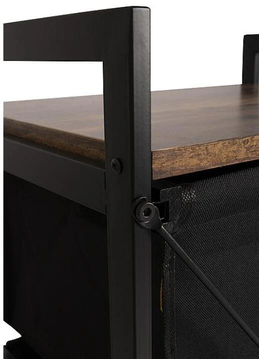 Ein stilvoller Schrank im Industrie-Look mit einer Platte in Holzoptik. Der Schrank ist mit zwei ausziehbaren Körben ausgestattet. Außerdem hat der Schrank einen stabilen Stahlrahmen und eine 2-farbige 600D-Polyester-Verkleidung. Ideal für den Garten, zu Hause oder im Zelt. Außerdem ist der Schrank komplett zerlegbar.