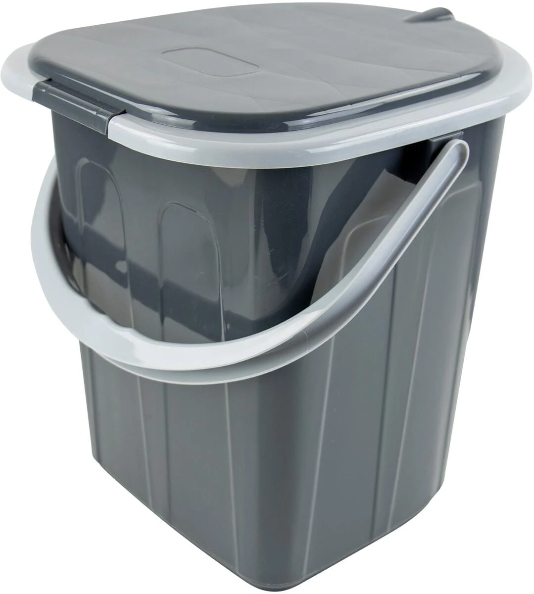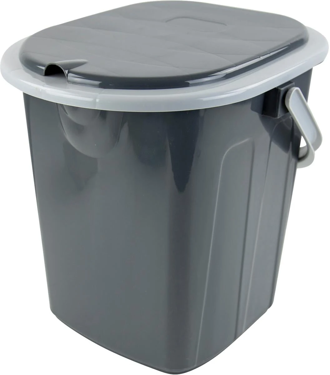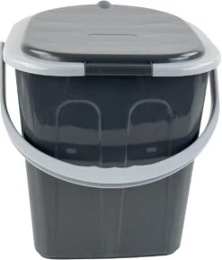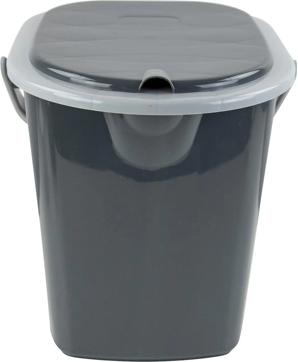 Praktische tragbare Toilette. Der Griff an der Toilette erleichtert das Mitnehmen. Ideal für Camping, den ersten Bedarf unterwegs oder bei einer Renovierung.
