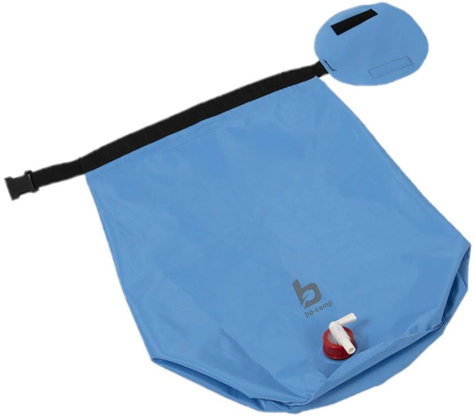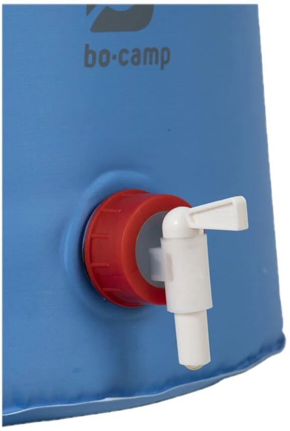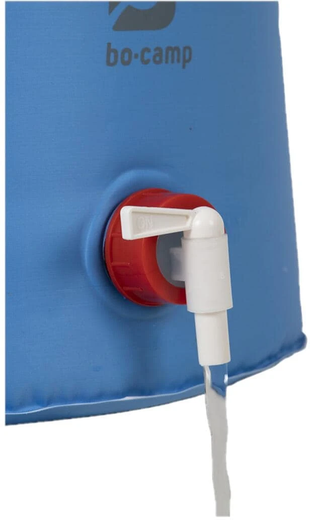 Sehr stabiler und flach faltbarer Wassersack mit einem robusten Wasserhahn und einem starken Griff.