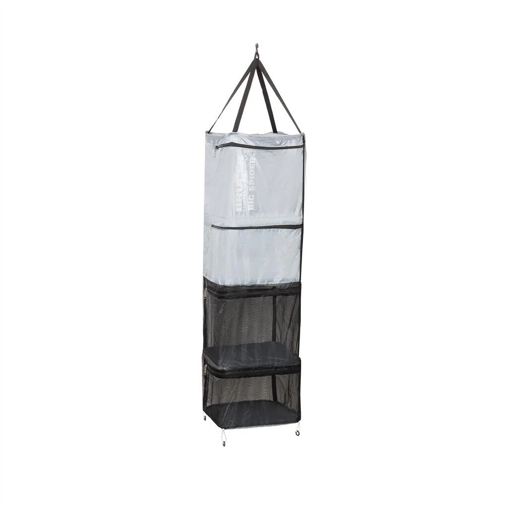 Großes Hängeregal mit vier getrennten RV-Fächern. Robuste, belastbare Ablagen. Bezug: obere Fächer aus beschichtetem Polyestergewebe, untere Fächer aus Gaze. Mit Befestigungshaken.