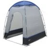 Praktisches Kabinenzelt für Camping und Strand. Perfekt geeignet, um sich zu duschen und umzuziehen, aber dank seines Belüftungssystems auch als einfaches Kochzelt bestens verwendbar. Einfacher Aufbau. Mit RV-Tür und umlaufendem Schmutzstreifen. Die steilen Wände sorgen für einen geräumigen Innenraum. Kompaktes Packmaß. Montagematerial und eine praktische Tragetasche sind im Lieferumfang enthalten.