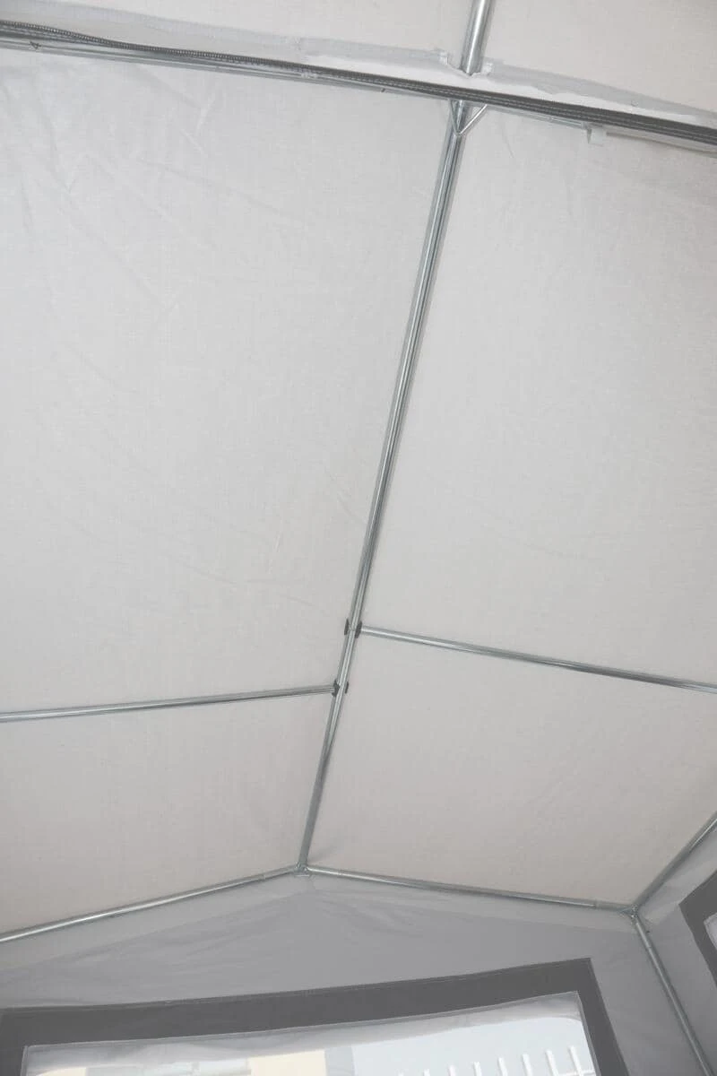 Neu entwickeltes Multifunktionszelt. Dient perfekt als Küchen- und Gerätezelt zum Schutz aller Gegenstände, die nicht im Freien gelassen werden können. Die gesamte Zelthaut besteht aus PVC und wird von einem stabilen Stahlgestell getragen. Drei große Fenster mit Mosquitogaze und einer effizienten Hochentlüftung sorgen für eine optimale Dauerbelüftung. Mit breiter Eingangstür, die seitlich aufgerollt werden kann. Mit Rundum-Schmutzstreifen.
