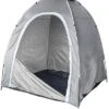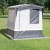 Klassisches Küchenzelt mit Giebeldach. Alle Fenster sind mit Moskitogaze und Folienabdeckung ausgestattet. Dach und Erdstreifen sind aus beidseitig beschichtetem PVC gefertigt