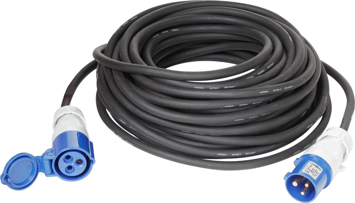 Verlängerungskabel CEE/CEE. Gummikabel. 230V-16A.
