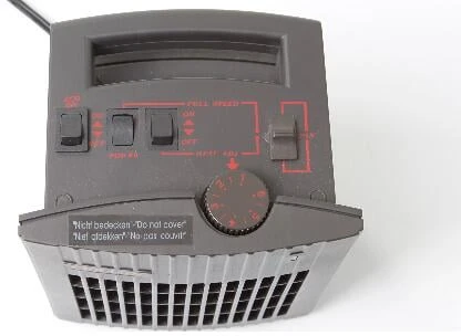 Leistungsstarker Keramik-Heizlüfter. Mit Schalter für Heiß- und Kaltluftbetrieb.