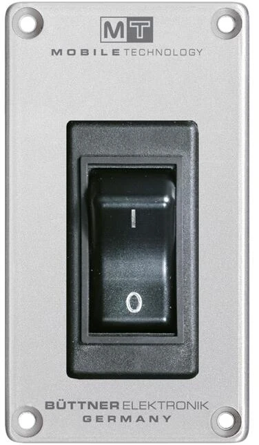 Ein/AUS-Schalter mit integrierten Überstromschutz. Wird er längere Zeit mit mehr als 20 A belastet, fällt er automatisch in die Aus-Stellung.