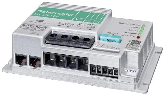Der Batterie Computer MT 5000 i steuert und überwacht das System. Auf Knopfdruck wird z. B. die noch vorhandene Kapazität oder die Restlaufzeit angezeigt. Auch die Solaranlage integriert sich perfekt ins System. Die PowerPacks sind mit 110 Wp bzw. 160 Wp 72-zelligen MT-Black-Line Modulen ausgestattet. Speziell für Reisefahrzeuge entwickelt und optimal auf das Komplettset abgestimmt, sichern sie optimale Ladeleistung auch bei ungünstigen Wetterbedingungen.