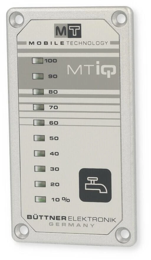 Die Tankanzeigen wurden zur genauen Füllstandsmessung in Frischwasser-, Abwasser- und Fäkaltanks entwickelt. Auf Tastendruck wird der gegenwärtige Füllstand über Leuchtdioden angezeigt. Bei nicht gedrückter Anzeigetaste ist die komplette Anlage stromlos und belastet in Ruhestellung nicht die Batterie. Da alle Instrumente dieser Serie die gleichen Höhenmaße besitzen, können die Tankanzeigen optimal mit den MT Digitalinstrumenten zum kompletten Schaltboard erweitert werden. 10-stellige Balkenanzeige gibt genauen Tankinhalt wieder.