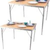 Garnitur bestehend aus einem Tisch mit zwei Bänken. Diese werden beim Verstauen platzsparend in der Tischplatte fixiert. Oberflächen Material HDPE in Grau, Gestell aus Stahlrohr.