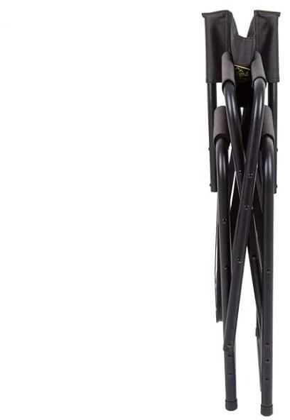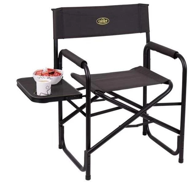 Regiestuhl Maxi mit schwarzem Aluminiumgestell und praktischem Seitentisch.