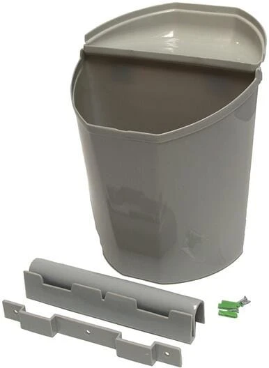 Abfalleimer mit Deckel. Inklusive 2 Einhänge-Schienen: 1 Schiene zur Festmontage z.B. Wand oder Reisemobiltür und 1 Schiene zum Einhängen z.B an Verandastange oder Ähnlichem.