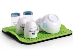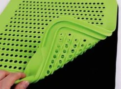 Die Silikon-Geschirrmate ist flach oder eingerollt verstaubar und ist somit ein Packmaß-Wunder. Bestehend aus 2 Teilen: die obere Matte mit Abtropflöchern sorgt dafür, das ihr Geschirr nicht in einer Pfütze steht, die untere Matte fängt das Wasser auf für einen sauberen Arbeitsplatz. In der Farbkombination lime-grün/schwarz passend zu vielen weiteren Camp 4-Haushaltsprodukten.