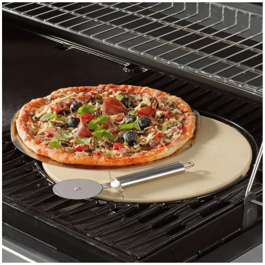 Wie wär’s mit einer selbstgemachten Pizza? Einfach den Pizzateig auf der Edelstahlplatte ausrollen und zusammen mit dem Pizzastein aus Keramik in den vorgesehenen Ring einsetzen. Für ein perfektes Ergebnis bitte Deckel schließen.