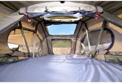 Auch an Stauraum wurde bei dem Adventure Dachzelt nicht gespart. Damit nichts verloren geht sind große Taschen im Innenraum eingenäht, für Handy, Brillenetui und Co. An Haken mangelt es bei dem Adventure Dachzelt ebenfalls nicht, denn Haken kann man nicht genug haben. Ob für die LED Zeltlampe oder um einfach nur die Mütze aufzuhängen. Um noch eins drauf zu setzen, gibt es inklusive zu dem Adventure Dachzelt ein speziell entwickeltes Staunetz. Inspiriert von Ladungssicherungen bei Flugzeugen sorgt dieses robuste und extra stabile Gepäcknetz unter dem Zeltboden für zusätzlichen Stauraum. Geht die Reise weiter, kann das Dachzelt ganz unkompliziert wieder zusammengeklappt werden und man hat immernoch genug Platz um die Bettwäsche einfach im Zelt liegen zu lassen.