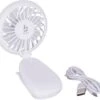 Dieser vielseitige Ventilator punktet mit seinem kompakten Packmaß. Das kabellose Gerät wird mit einem Akku betrieben und anhand des mitgelieferten USB-Kabels geladen.