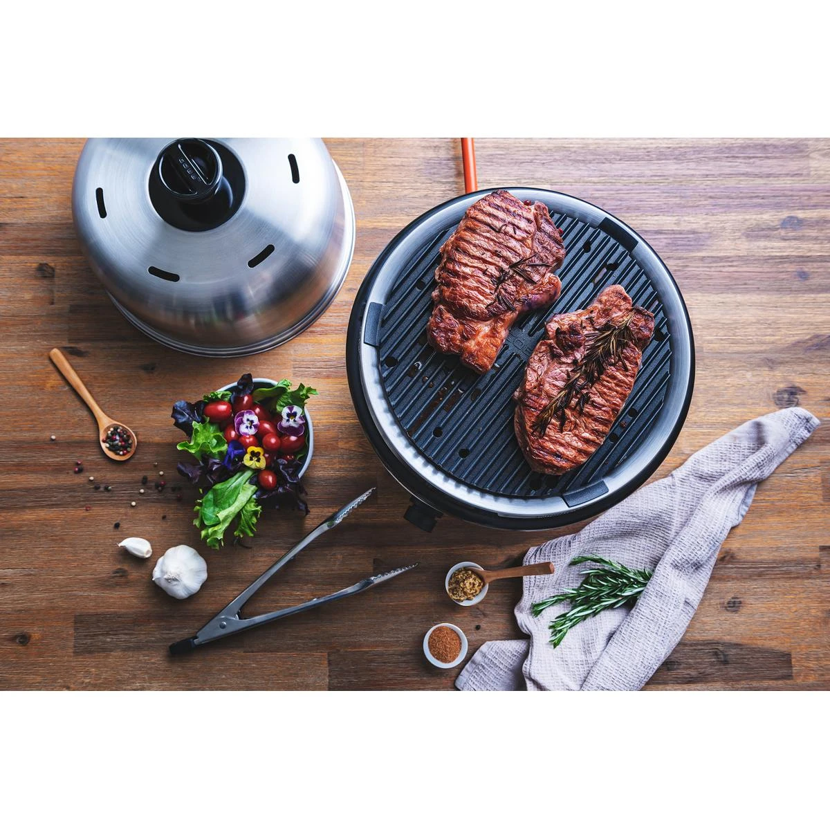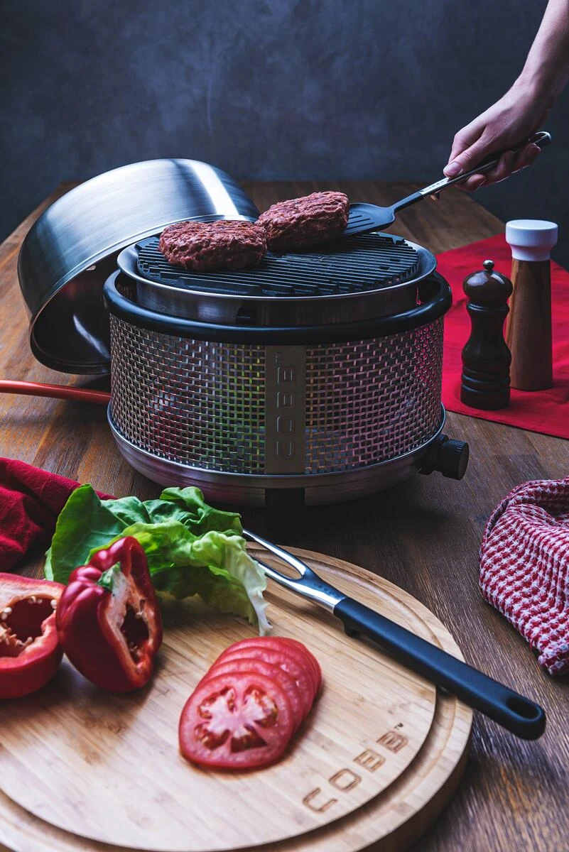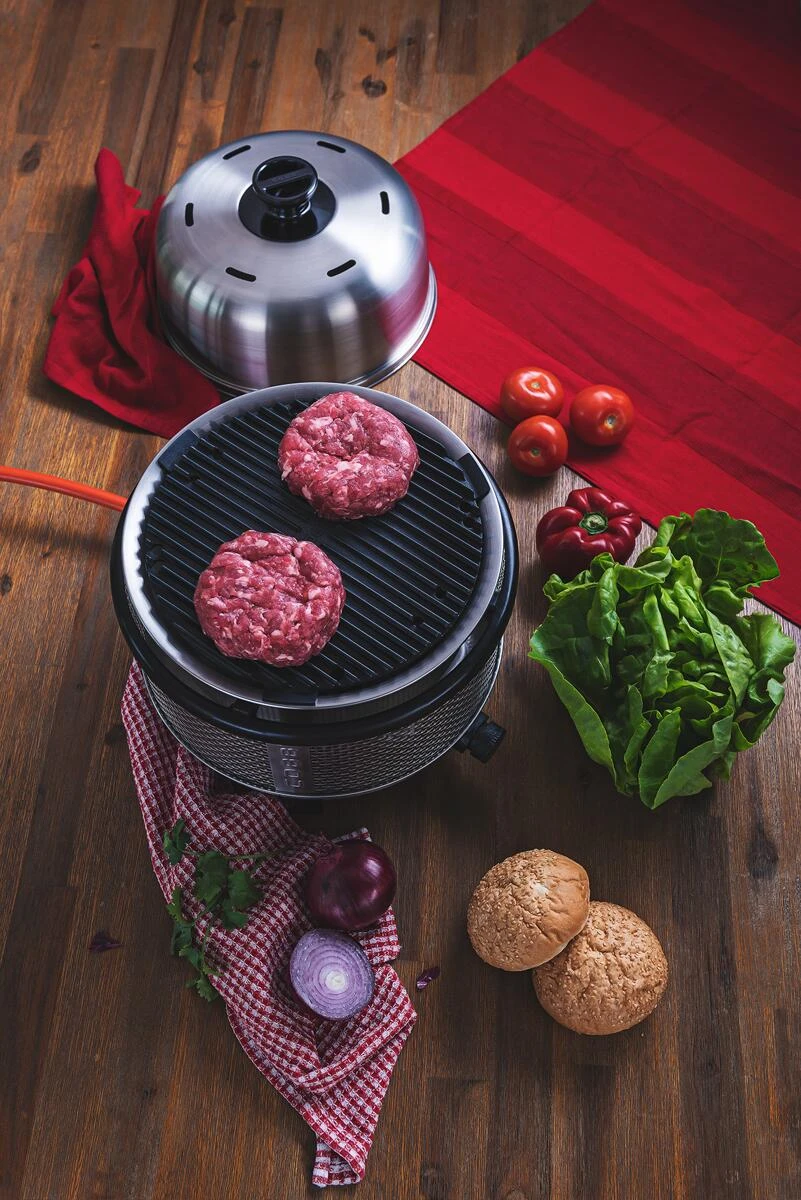 Der COBB Premier + Gasgrill Deluxe ist auf Knopfdruck einsatzbereit. Der Anschluss des Gasschlauchs ist sehr geschickt unterhalb des Bodens platziert. Sie können die Temperatur ganz einfach am Regler feinjustieren. Sollte die Flamme durch eine Windböe mal ausgehen, verfügt der COBB Premier + Deluxe über ein Sicherheitsventil, das dafür sorgt, dass das Gas nicht weiter ausströmen kann und abgeschaltet wird.