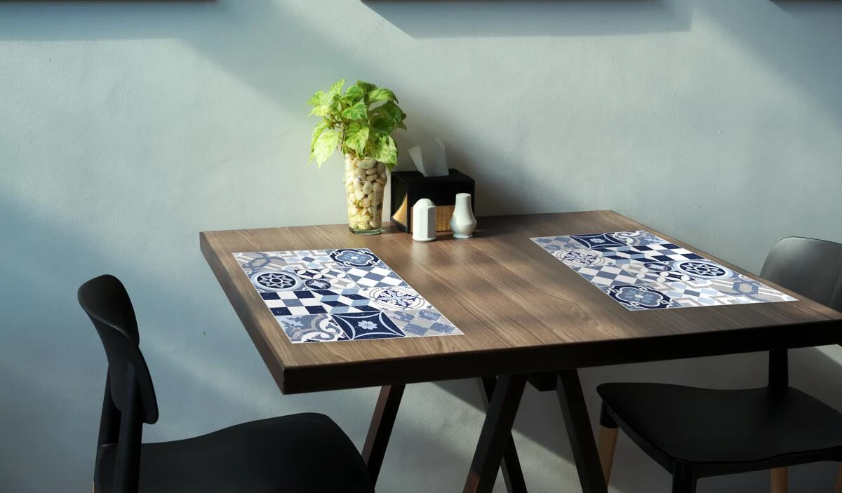 Diese Tischsets aus Vinyl im 2-er Set sind sehr pflegeleicht und robust. Sie sind außerdem wasserfest und lichtecht und damit ein ideales Zubehör für Campingreisen. Das 1,6 mm starke Material ist reißfest und lässt sich einfach mit einem feuchten Tuch reinigen. Die Tischsets eignen sich auch aufgrund ihrer Rutschfestigkeit als Unterlage z.B. für Küchengeräte.