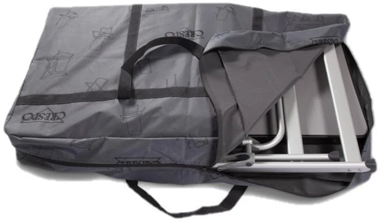 Diese geräumige Transporttasche mit Reißverschluss und Trageriemen besteht aus widerstandsfähigem 600D Polyester und ermöglicht eine platzsparende Aufbewahrung. Die Tasche ist perfekt zum Schutz von 2 Hochlehner-Stühlen und 1 Tisch geeignet.