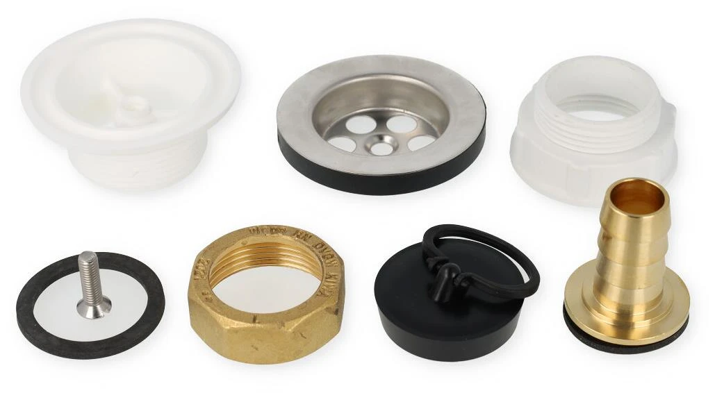 Massive Ausführung für Duschwanne mit 1/2′ Öffnung mit Dichtung, Stöpsel, 3/4′ Schlauchanschluss.
