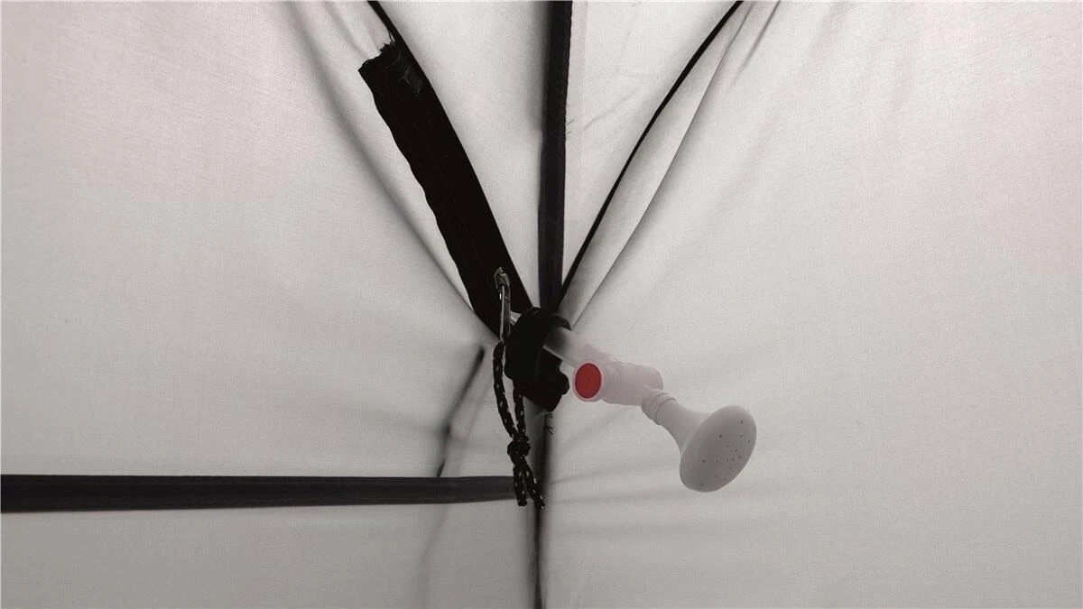 - Reißverschlussöffnung in der Decke für Duschkopf
