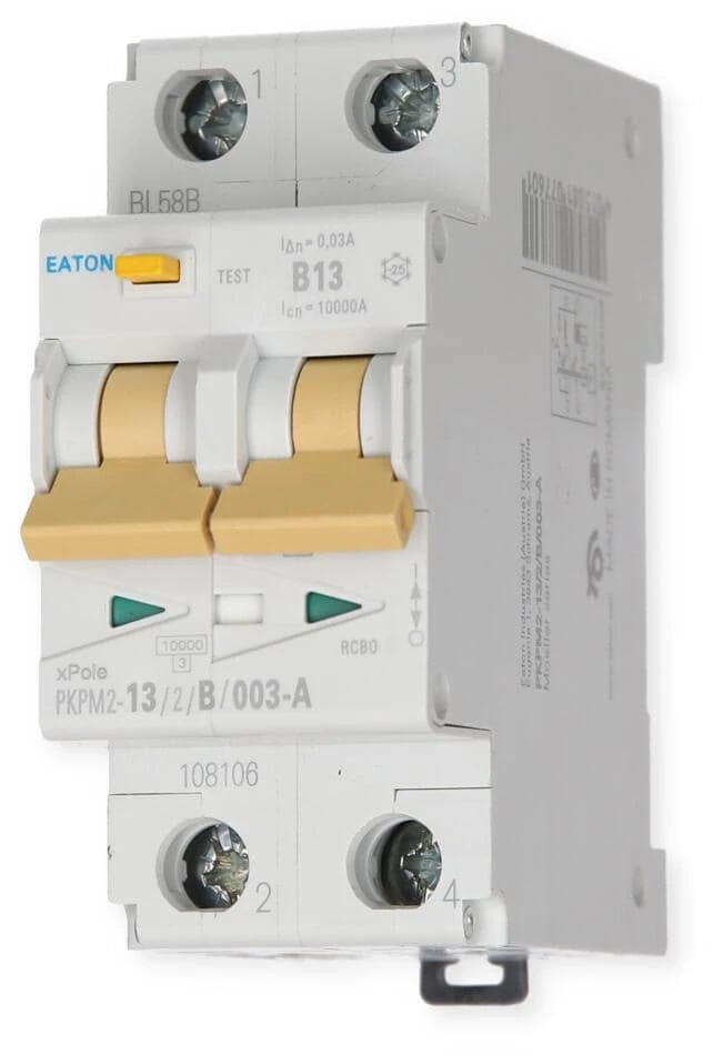 Sicherungsautomat mit FI-Schutzschalter (13 A) zur Nach- oder Umrüstung Ihrer Elektroanlage. Ohne Gehäuse.