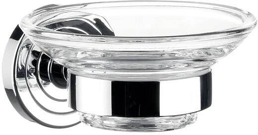 Die Halterungen sind aus Metall, chrom-hochglanz und die Ablage aus Kristallglas, klar.