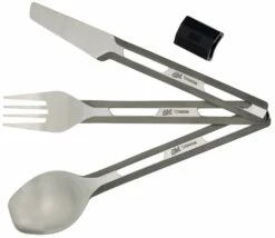 Dieses universell einsetzbare, robuste Besteck-Set aus Titan spart an der richtigen Stelle: Beim Gewicht.