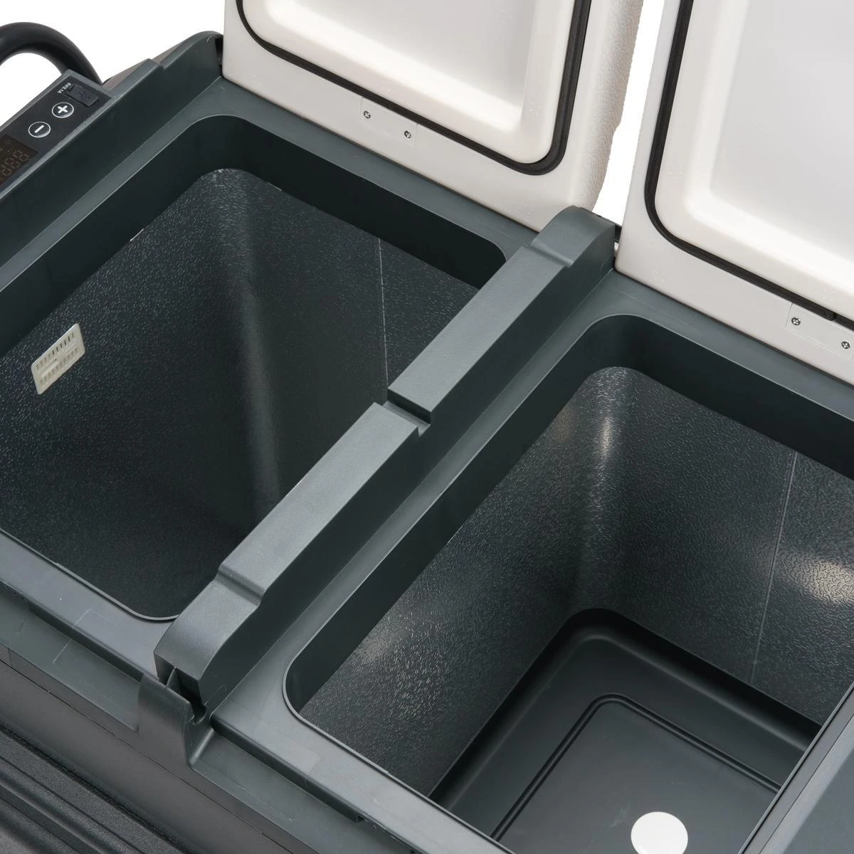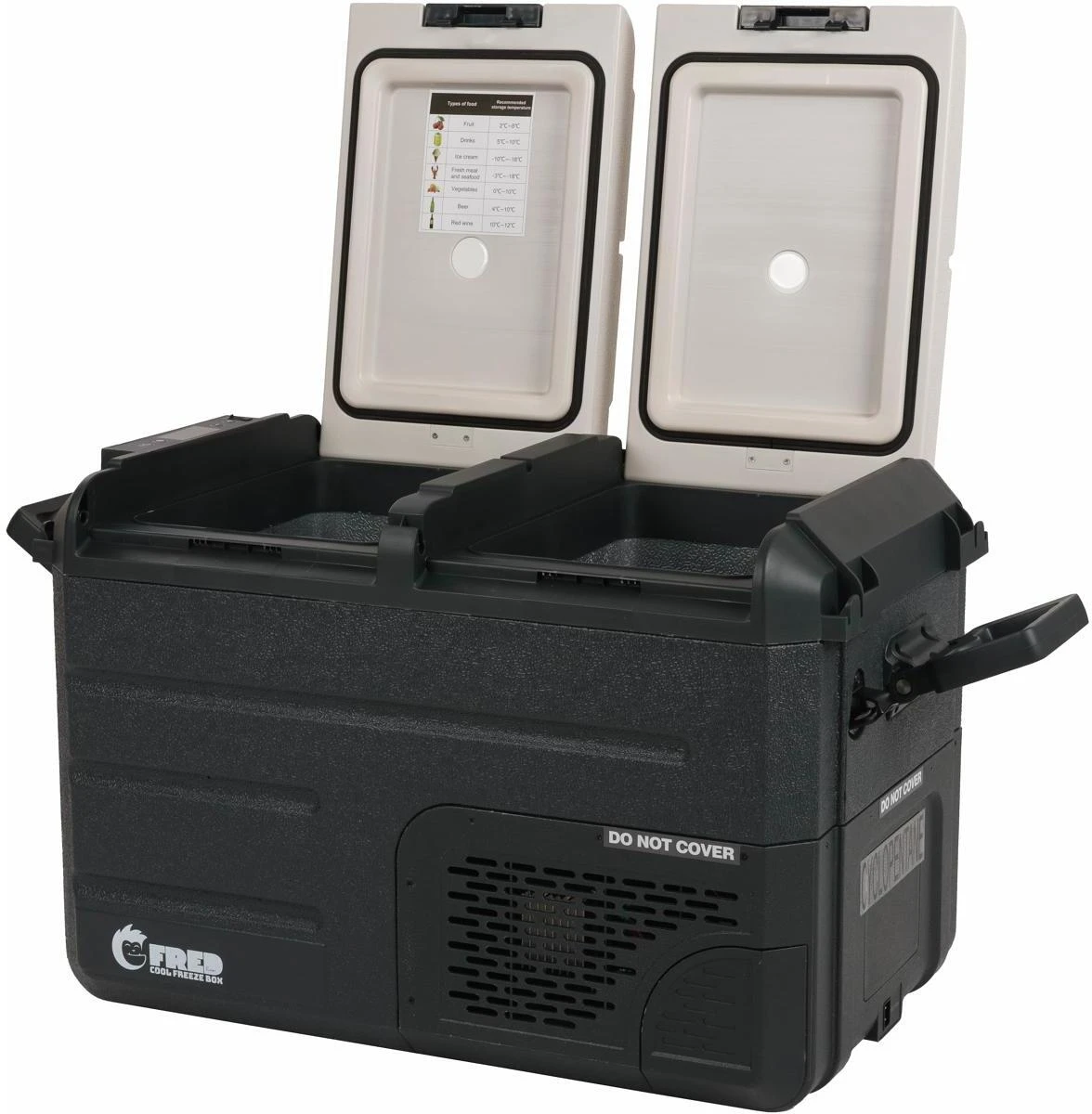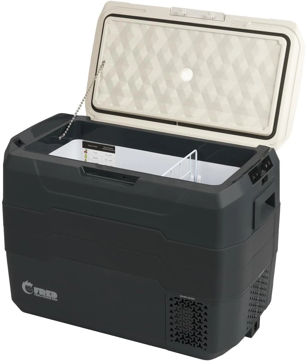Fred ist ein praktischer Kühl-Gefrierschrank. Sie ist somit nicht nur eine Kühlbox, sondern kann auch einfrieren Mit dem intuitiven Display können Sie die Temperatur auf bis zu -20 ºC einstellen. Und da Fred mit einem Kompressor arbeitet, werden Sie nicht unter Kondensation leiden. Das ist schön! Wenn Sie aufgrund der darin enthaltenen Produkte Feuchtigkeit in der Kühlbox haben, können Sie diese auch einfach durch den Ablassstopfen am Boden der Box ablassen. Fred nutzt Strom und Sie können ihn dank des mitgelieferten 230-Volt- und 12/24-Volt-Adapters direkt an die Steckdose oder im Auto oder Boot anschließen. Außerdem funktioniert der Kompressor auch am 12/24-Volt-Adapter, sodass Sie im Auto oder Boot nicht von Kondenswasser gestört werden.