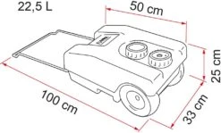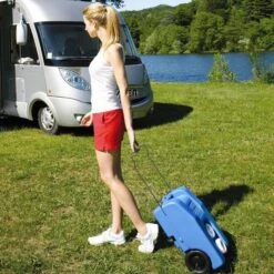Praktischer, tragbarer Frischwassertank mit 23 Litern Fassungsvermögen und bequemem Drehverschluss für die Entleerung. Kompakt, passt in viele Staufächer. Verschluss für Tauchpumpe gehört zum Lieferumfang.