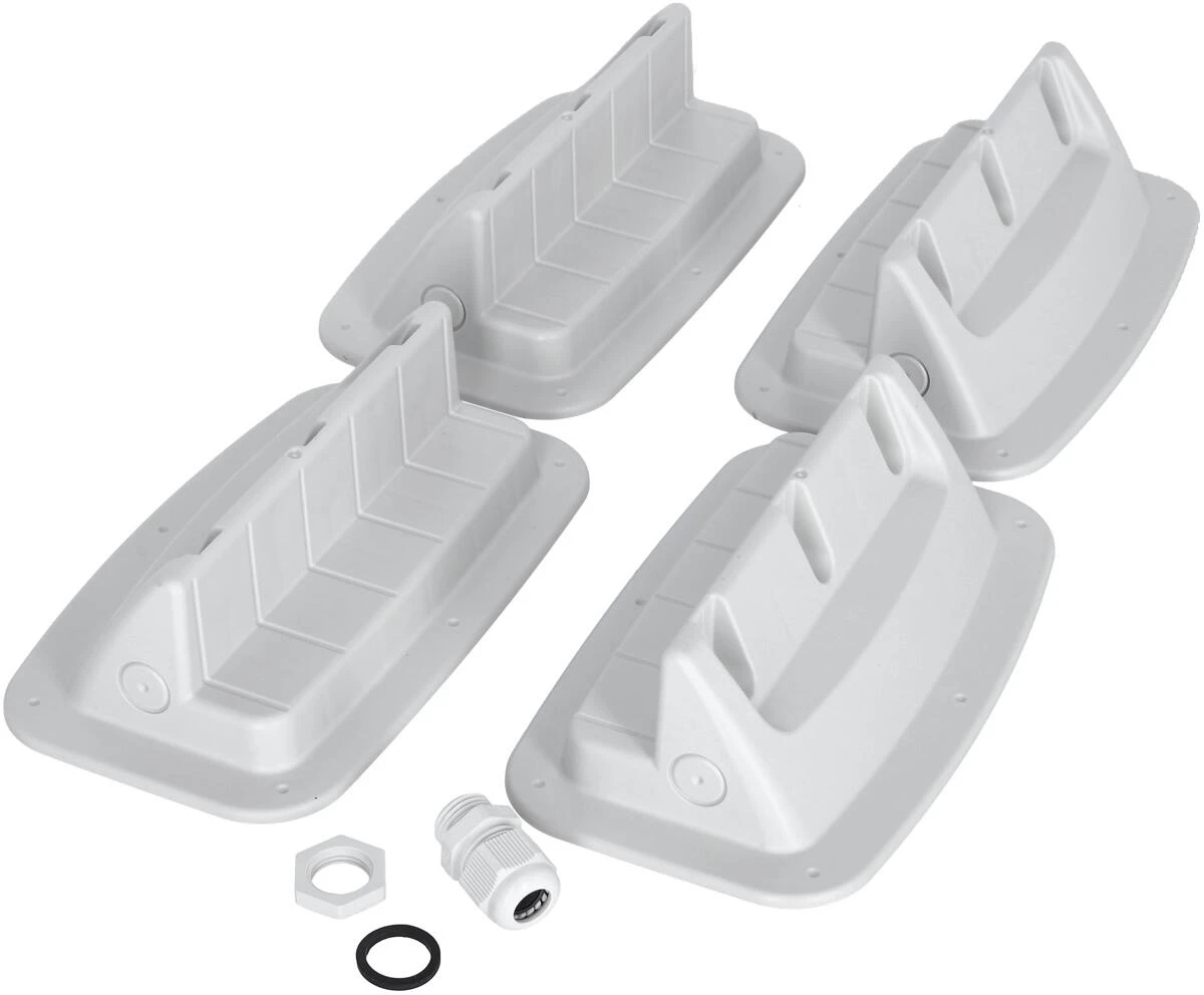 Das Set besteht aus 4 Halterungen (1x mit Kabeldurchlass M16)