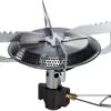 Kraftvoller Gaskocher dank der reflektierenden Wirkung der Windschutzscheibe aus Edelstahl. Kartuschenhalter mit patentiertem Sicherheitssystem. Kann an eine Gaskartusche 190 gr angeschlossen werden.