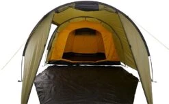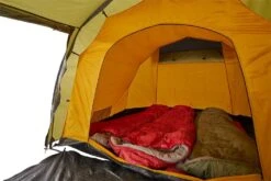 Wenn Platz die größte Rolle spielt. ROBSON 3 ist der perfekte Begleiter für Ihre nächste Rad- oder Kanutour. Dank der einheitlichen Höhe im Innenzelt und in der Apsis bietet das Zelt ausreichend Platz für drei bis vier Personen im Schlafbereich und viel Platz für Ausrüstung und Gepäck in der Apsis. ROBSON 3 hat eine hervorragende Windbeständigkeit an der Längsseite. Die Moskitonetze am Innenzelt und die großen Belüftungsöffnungen mit Abdeckung auf der Außenplane sorgen für eine hervorragende Luftzirkulation und ein stets angenehmes Raumklima im Innenzelt.