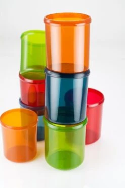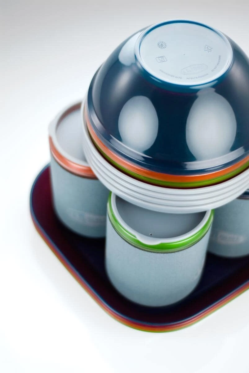 Das Infinity Deluxe-Tischset für 4 Personen besteht aus vollständig recycelbarem, BPA-freiem Polypropylen, das keine Gerüche aufnimmt und keine Chemikalien in Ihre Lebensmittel gelangt. Dieses Set enthält 4 Nistschalen, 4 isolierte Becher mit Sip-It-Deckel, 4 große Teller und alles in einem kompakten Netzbeutel.
