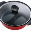 Der Kessel besteht aus schwerem Stahl mit einer klassischen gesprenkelten Emaille-Oberfläche und wurde zweimal bei über 530 Grad Celsius im Ofen gehärtet, um Kratzern und Absplitterungen standzuhalten. Die dreilagige Konstruktion maximiert die Wärmeverteilung für gleichmäßiges Kochen.