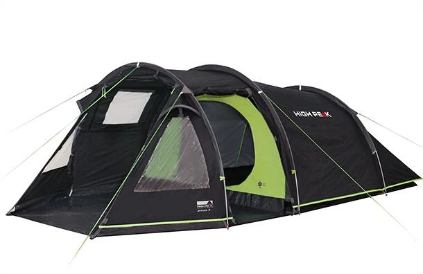 Sportives Tunnelzelt mit Vorbau. Der große Vorbau hat einen Seiteneingang für mehr Bewegungsfreiheit und verstaut perfekt das Gepäck oder dient als Aufenthaltsraum bei Regen. Der Vorbau hat einen Zeltboden der am Innenzelt fest angenäht ist. Dies hat den Vorteil, dass der Boden immer in der richtigen Position ist und lästiges Verrutschen verhindert wird. Faulstreifen halten Schmutz und Feuchtigkeit ab. Klarsichtfolienfenster bringen Licht ins Zelt und die Gardinen schützen vor neugierigen Blicke. 3 Dauerventilationen belüften das Zelt bei jeder Wetterlage optimal und müssen immer geöffnet sein. Das Zelt hat extra starke Reißverschlüsse und reflektierende Abspannschlaufen für mehr Sicherheit. Die sehr stabilen 5 mm Durchmesser Stahl-Erdnägel verbiegen sich auch bei hartem Untergrund nicht. Für die Abspannung werden spezielle 5 mm Stahl-Erdnägel mit Haken für besseren Halt der Spannleinen geliefert. Die Reißverschluss Abdeckung ist mit einer zusätzlichen Regenrinne ausgestattet. Diese schützt zusätzlich gegen das Eindringen von Nässe. Das Außenzelt wird zuerst aufgebaut und dann die Innenzelte eingehängt. Das hat den Vorteil dass die Innenzelte während des Aufbaus bei regnerischem Wetter trocken bleiben. Innenzelt mit Vario Vent Control System. Der Gazeeingang hält lästige Plagegeister fern und kann bequem von innen, je nach Klima, variabel bedient werden. Die Abdecklappe verstaut man einfach in einer Tasche. Das lästige Aufrollen gehört der Vergangenheit an. 2 Dauerlüfter klimatisieren das Innenzelt bei geschlossenem Vario Vent Control System. Praktische Taschen für Utensilien und Lampenhalterung machen das Schlafzimmer komfortabel. Die Nähte sind mittels Nahtband wasserdicht versiegelt und gewähren eine bessere Naht-Reißfestigkeit. Das Atmos 3 bietet 3 Personen Unterkunft und reichlich Platz für Gepäck. Geeignet für Camping Urlaub oder Wochenende in der Natur.