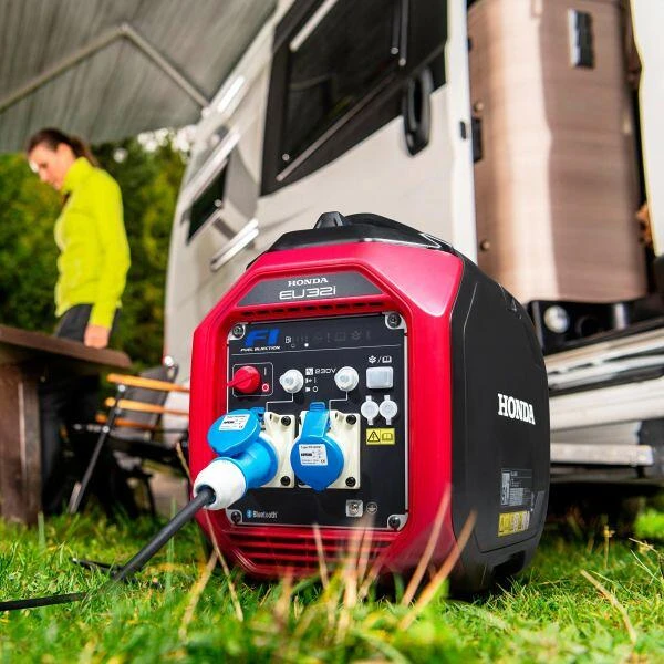 Ausgesprochen leise, leichte und sehr robuste mobile Stromerzeuger mit 4-Takt-Benzinmotor. Die Betriebsdauer liegt je nach Typ zwischen 3,5 und 20 Stunden. Das Modell EU 10i ist mit einer, der EU 22i und der EU 30is sind mit 2 Schutzkontaktsteckdosen ausgerüstet. Es wird die Invertertechnologie angewendet, welche perfekte Frequenz- und Spannungsstabilität bietet. Alle Modelle haben eine Ökoschaltung, das heißt die Motorsteuerung passt die Drehzahl automatisch des entnommenen Stroms an und verlängert so die Betriebsdauer des Stromerzeugers erheblich. Hoher Bedienungskomfort lässt eine Fehlbedienung praktisch nicht zu. Zur Sicherheit sind alle Modelle auch mit einem Überlastungsschutz sowie mit einer Ölmangelabschaltung ausgerüstet. Ein zusätzliches Plus: 2 gleiche Modelle können zur Verdoppelung der Ausgangsleistung mühelos parallel geschaltet werden.