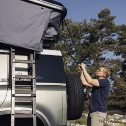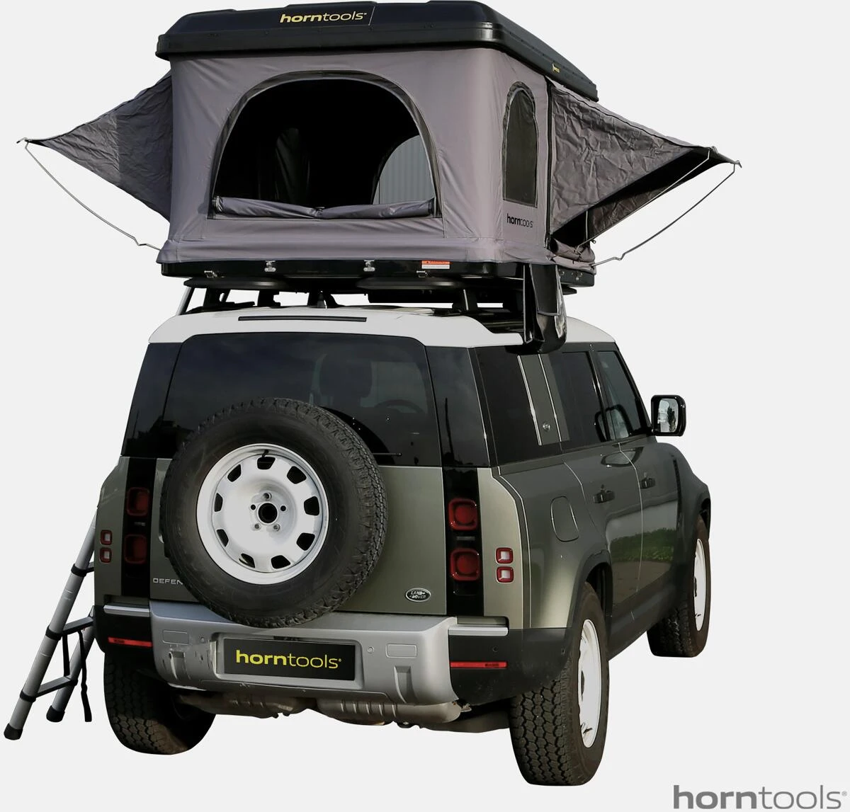 Das neue ABS Hartschalen Dachzelt aus dem Hause horntools. Mit 3 überdachten Eingängen und 3 separaten Fenstern, hast du eine tolle Aussicht und schaffst ein angenehmes Raumklima im Zelt. Der isolierte Boden und Himmel verhindern Kondenswasser.