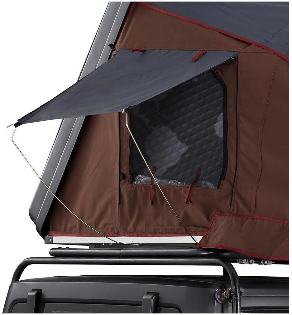 Das spezielle Design der Glasfaserhartschale reduziert nicht nur den Luftwiderstand auf der Straße sondern verfügt auch über eine spezielle Luftzone zwischen der äußeren und inneren Form. Diese Luftzone macht die Hartschale nicht nur besonders stark und langlebig, sondern isoliert das Innere des Dachzeltes auch gegen Schall und Kälte. Die Hartschale wird standardmäßig mit robusten, abschließbaren Metallverschlüssen geliefert. Die moderne, glänzende Oberfläche macht die Hartschale auch noch zu einem optischen Hingucker.