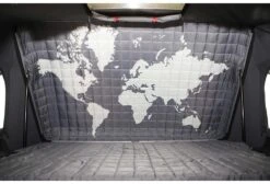 Mit dem neuen Roll-up Schnell-Öffnungssystem lassen sich die Fenster aus dem Inneren des Dachzeltes bedienen. Alle Fenster sind mit einem sehr feinen, robusten Moskitonetz, einem von innen verschließbaren Wetterschutz, sowie speziellen Überdachungen, die das Durchlüften auch bei starkem Regen ermöglichen, ausgestattet. Einzigartig ist das innovative Panorama-Dachfenster. Tagsüber lässt es die Sonnenstrahlen rein und nachts kann man den Blick auf den Sternenhimmel richten. Für Langschläfer verfügt das Dachfenster selbstverständlich über eine von innen verschließbare Stoffabdeckung. Die neue 9 Zonen-Matratze ist nun 40% dicker als beim Skycamp 2.0 und mit einer zusätzlichen Isolierschicht für kältere Nächte ausgestattet. Mit einer Größe von 196 x 210 cm bietet die Matratze Platz für bis zu 4 Personen und ist durch ihr spezielles Luftkammerfutter nicht nur besonders bequem sondern auch atmungsaktiv und gehört zu den hochwertigsten Matratzen im Bereich Camping. Trotz ihrer schlanken Form verfügt sie über eine starke Dichte und schmiegt sich dem Körper schön an. Als kleines Highlight, wird auf der Innenseite der Hartschale die bekannte, textilbedruckte Weltkarte aus neuer hochwertiger Steppung in edlem dunkelgrau abgebildet. Diese sorgt für eine gemütliche Atmosphäre und lässt schon von den nächsten Urlaubszielen träumen. Das mitgelieferte Tropendach hält die Sonnenstrahlung ab und sorgt durch die Luftschicht zwischen Dach und Zelt für ein angenehmes Raumklima. Bei dem Skycamp 3.0 wurde außerdem eine neue Zubehörschiene mit stärkeren Ringösen und Kederleiste mit höherer Haltbarkeit eingearbeitet. eingearbeitet