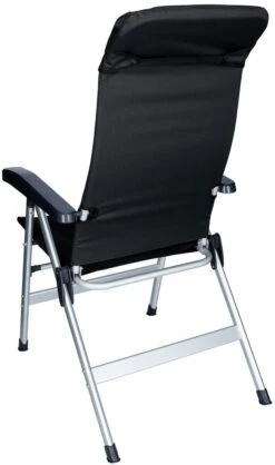 Komfort-Campingstuhl mit 8-fach verstellbarer Rückenlehne und Kopfpolster, welches man in der Höhe verschieben kann.