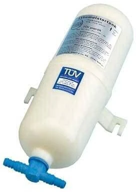 Gewährleistet gleichmäßigen Wasserfluss bei automatischen Druckpumpen und verhindert deren mehrfaches Ein- und Ausschalten bei geringer Wasserentnahme. Gemäß Bauteilkennzeichen TÜV-SW-005-93 sicherheitstechnisch zugelassen für 5 bar Überdruck bei 60 °C. Mit Entlüftungsschraube zur Systementleerung und stabilen Befestigungslaschen am Gehäuse.