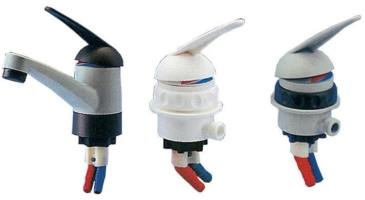 Hochwertige Kunststoffarmaturen in Haushaltsausführung. Mit keramischen Dicht- und Regelscheiben, die in der Mischerkartusche gekapselt sind. Alle Armaturen mit eingebautem Automatikschalter, der beim Aufdrehen des Wasserhahns selbsttätig die Wasserpumpe schaltet.