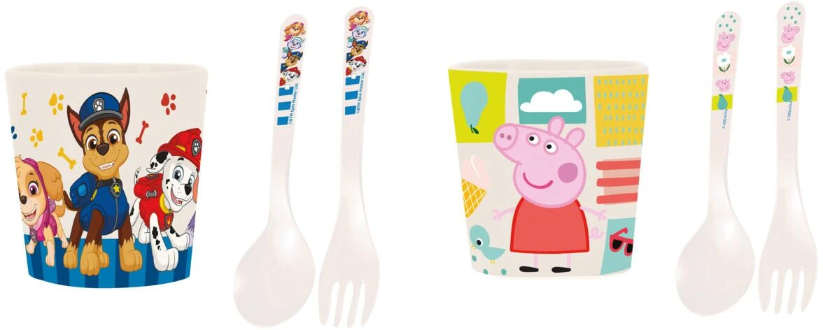Mit diesem Set lernen Kinder spielerisch eigenständig zu essen. Gabel und Löffel begeistern durch ihre weiche Formgebung und die abgerundeten Kanten. Die breiten Griffe sind speziell für kleine Hände konzipiert und unterstützen die kindliche Motorik. Das Material ist besonders langlebig und robust, natürlich schadstofffrei und leicht zu reinigen. Der kompakte Becher hat die perfekte Größe und lässt sich von kleinen Händen gut greifen. Er ist robust, leicht und stapelbar und damit auch für unterwegs ein unverzichtbarer Begleiter.
